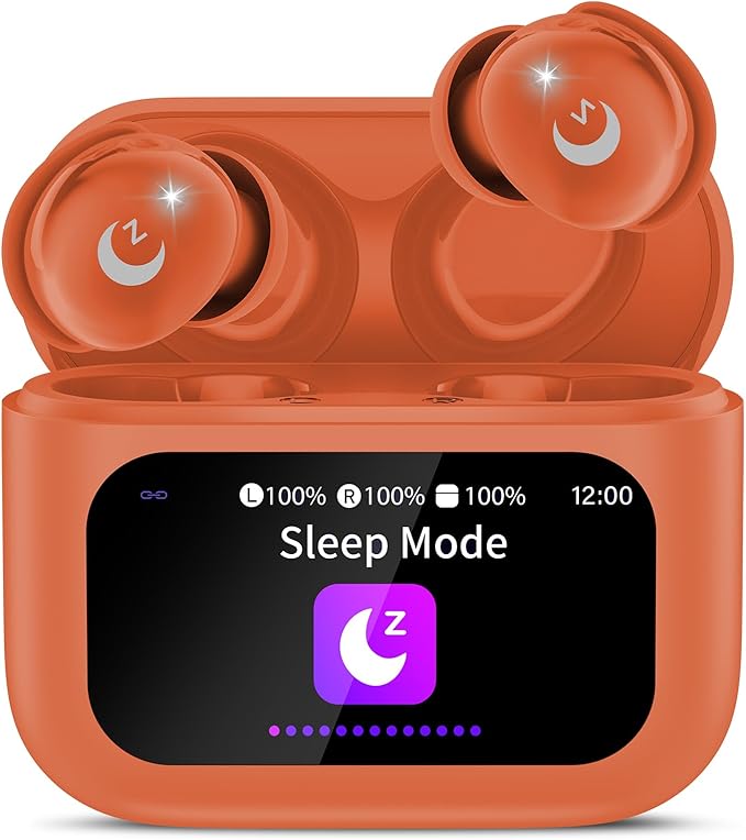 VEKJ Mini Wireless Bluetooth 5.4 Earbuds – In-Ear Headphones with Smart Touch Screen, Noise Cancelling & Built-in Microphone (Orange)